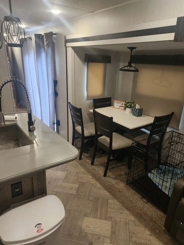 Join the seasonal family at Kinney Lake Campground. 2024 29ft Salem camper, king bed in front, bunkhouse with two bunks and a queen size futon. Instant water heater, storage galore! This camper is located in a central location in the park perfect for you are and your family. Covered deck, shed, fenced in yard, 300 gallon black tank! Text or Call Sarah for more info 715-340-3830. Camper on site $38,999. Camper without site $37,999 plus tax.