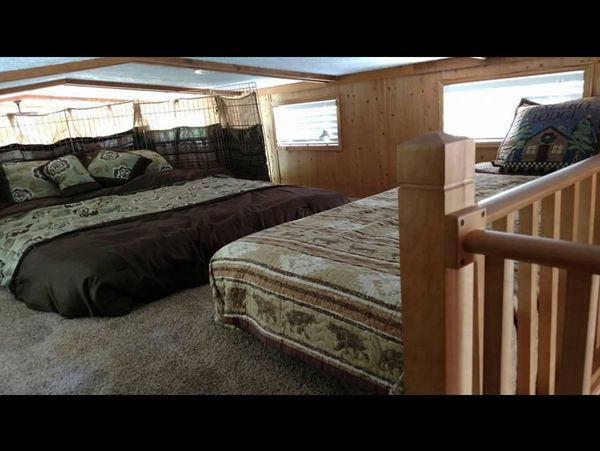 Spacious rustic style park model with real stone electric fireplace, sectional sofa that turns into a bed, and full sized appliances. Master bedroom with queen sized bed and tons of storage. Split loft with its own ac unit, loft sleeps 5 people with room for more. Large landscaped fenced in lot with huge covered porch and newer 20 x 10 Amish built shed. Shed has an additional storage loft and separate room for more storage. We are retiring and looking to travel